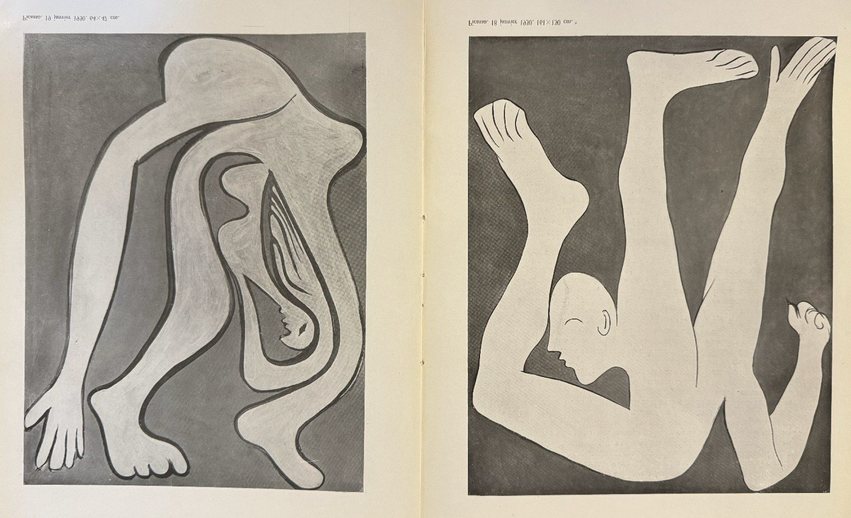 Finally, in the same issue of Documents (fig. 8) we find a pair of acrobat paintings completed shortly before the journal’s publication in 1930: one of a female trapeze artist falling, the other of a male contortionist touching the ground and sides that contain him. As before, figure flips into ground, and vice versa, as both profiles give form to a distorted but clearly visible opposing silhouette along their shared outline.20 Each light-colored face kisses the dark ground of its partner while negative space cups the trapeze artist’s breast and erotically supports the contortionist’s head. Grounded and groundless, Picasso’s acrobats pair off two seemingly opposed experiences of being-in-the-world: one of falling and flux, the other of stasis and structure. But as Zeidler emphasizes, falling and rootedness each give rise to the other for Einstein, much as the dark negative ground that slowly appears in the space surrounding the acrobats gives form to the positive figure that we see with ease.