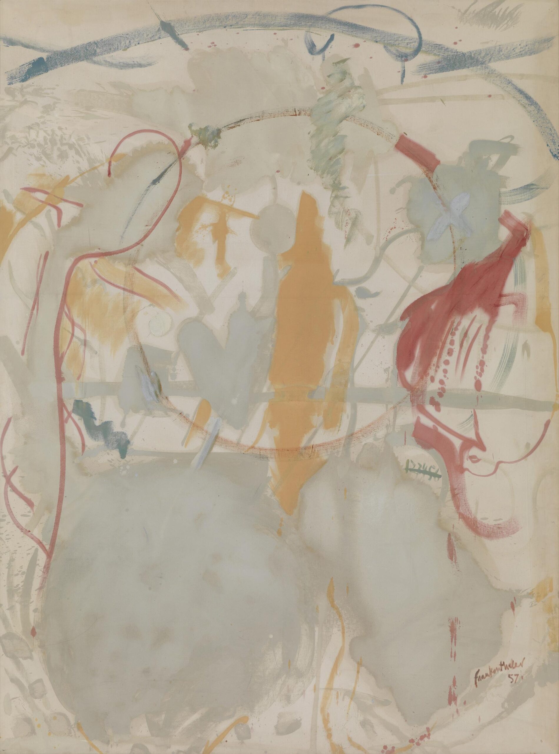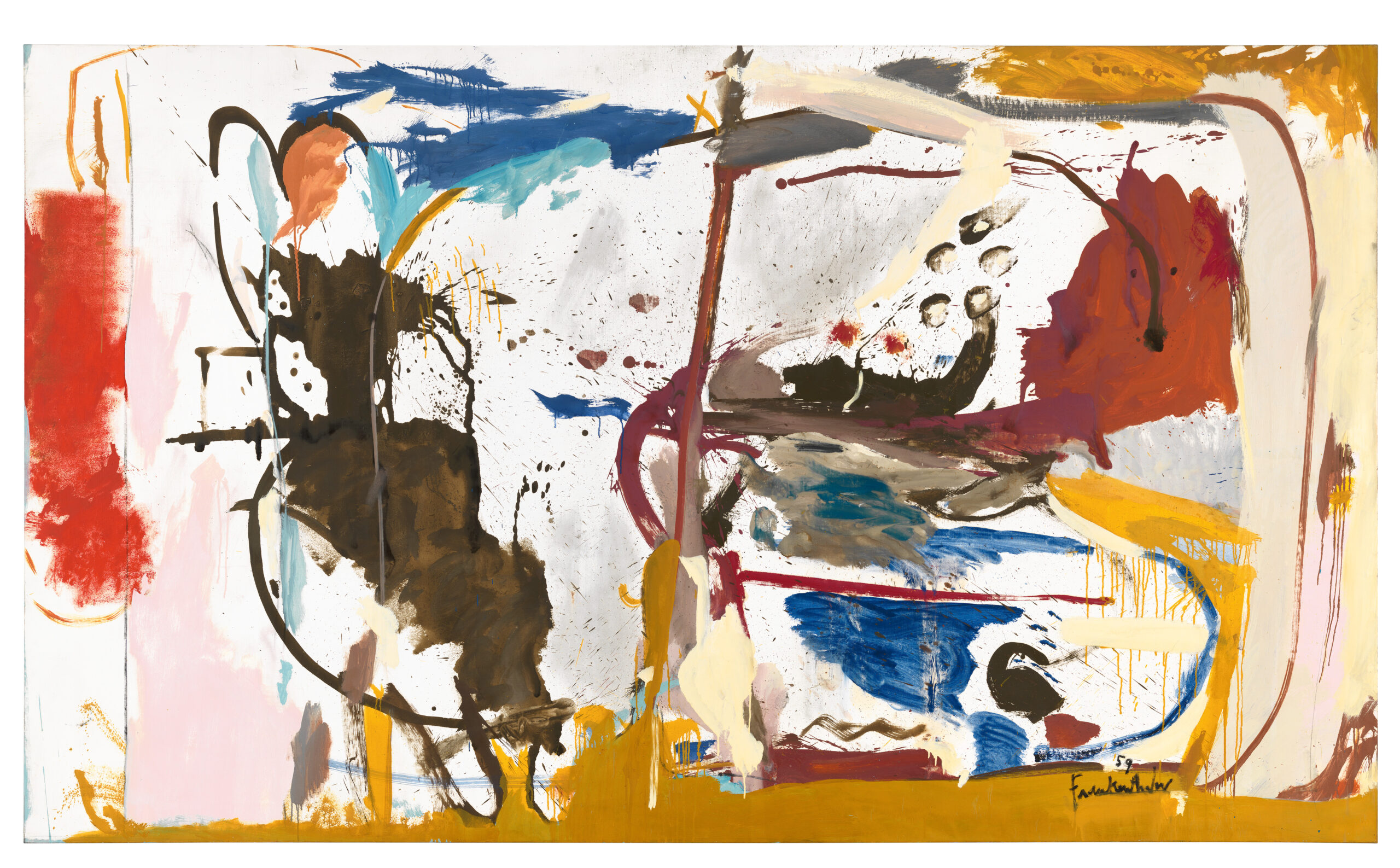 As Eliot pointed out, there is an essential difference between how a poet’s ancestors assert their immortality in his work in the impressionable period when he is maturing and in his period of full maturity. In Frankenthaler’s case, some six years after painting Mountains and Sea, she began to look for ancestors not any longer among modern and contemporary painters but in work of the artists to be found in museums. And it may not be accidental that this coincided with the beginning of her full maturity as a painter.