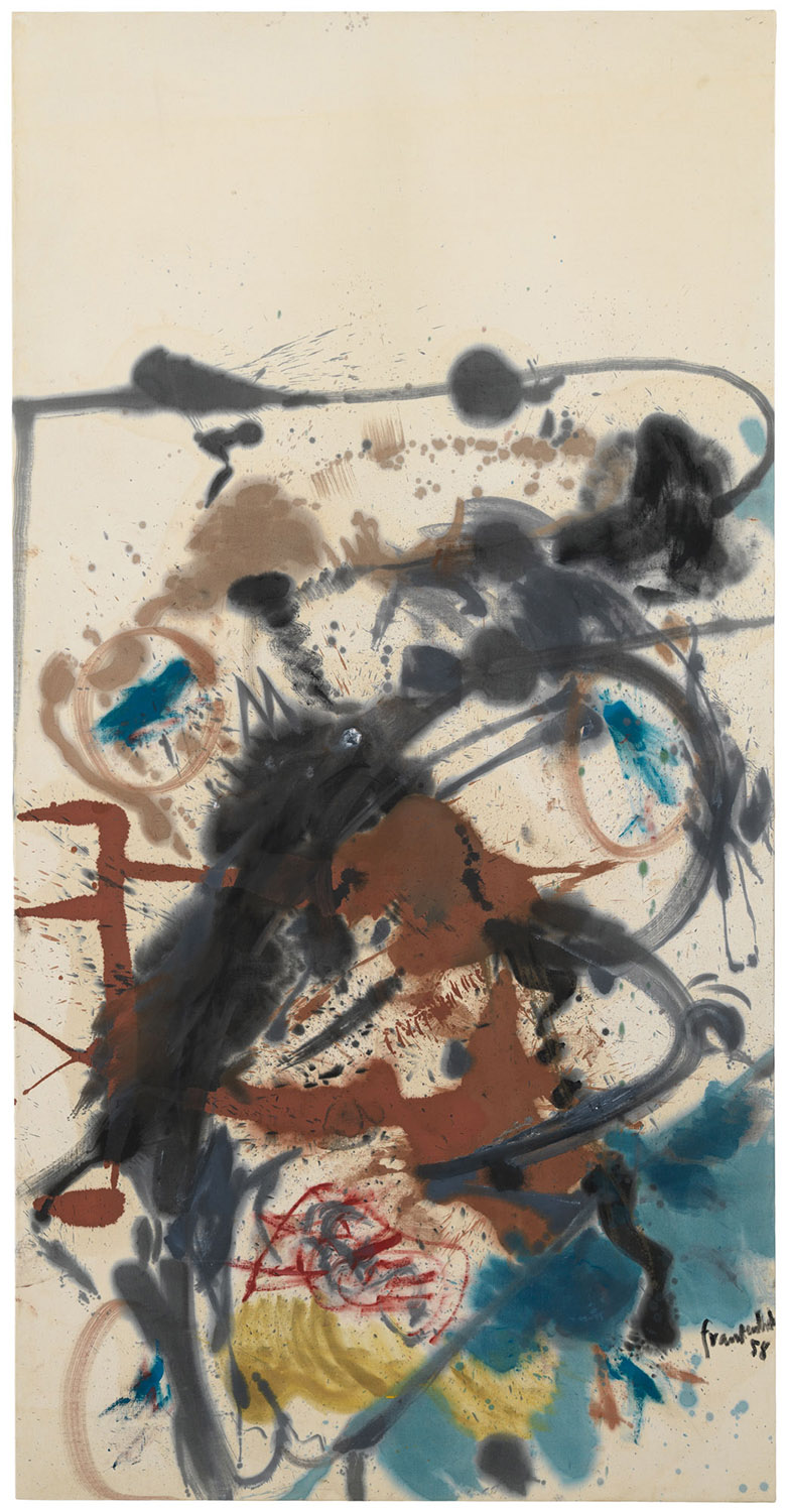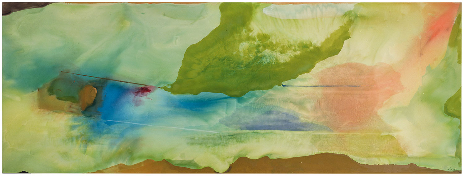 Essential to the earlier conception was addressing the common belief that Mountains and Sea, the soak-stain canvas Helen painted on October 26, 1952, was her most important, because most influential, picture. A “bridge between Pollock and what was possible” was how Morris Louis famously described it—meaning what most people came to know as Color Field painting but the critic Clement Greenberg called, in 1964, “Post-Painterly Abstraction.”