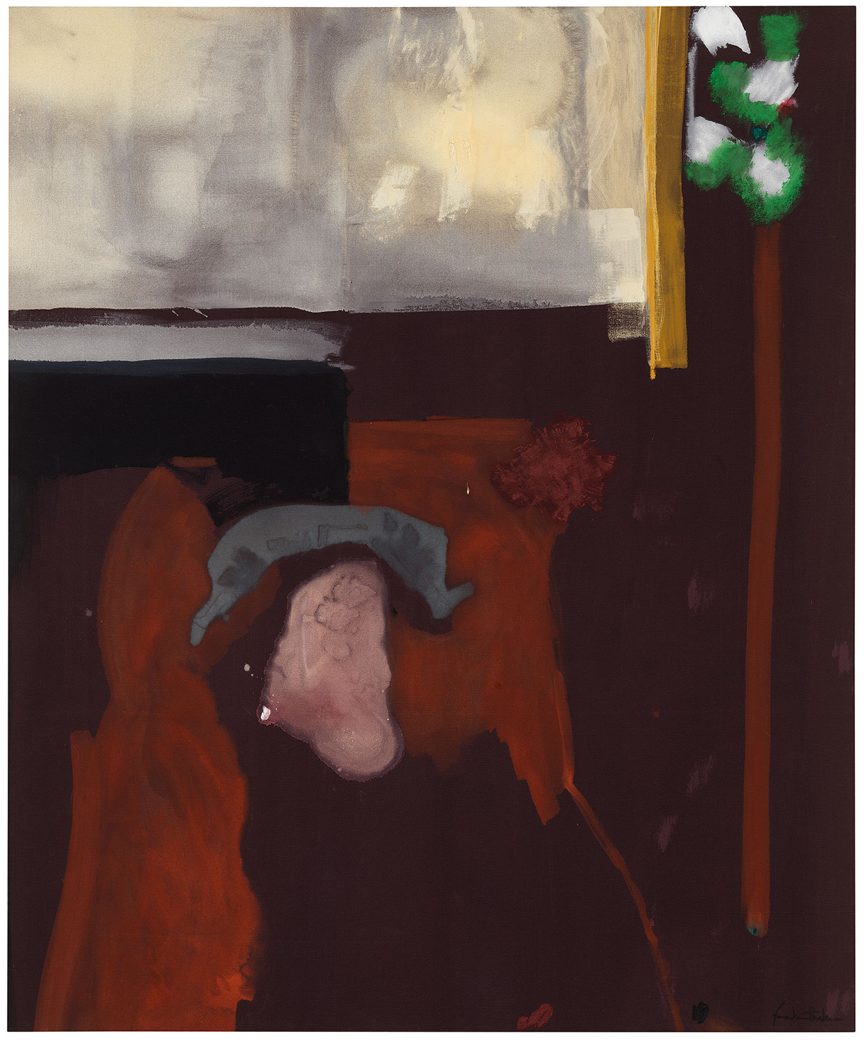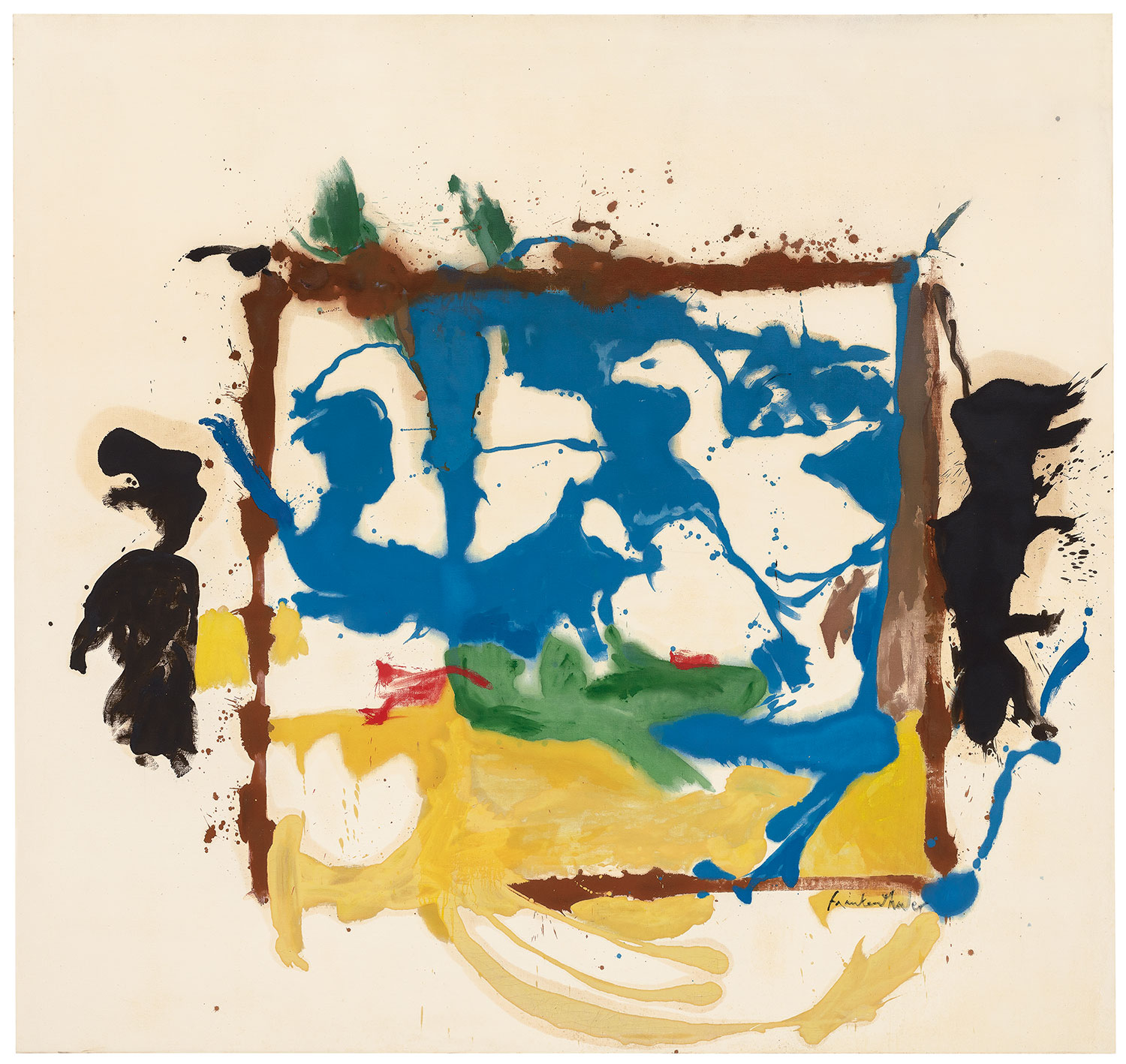 There are other topics in addition to these, which I raise in the book, that I hope someone else will be interested enough to pursue further. I said earlier that Frankenthaler made painterly abstract compositions: some far more painterly than others, some less fully abstract than others, and yet others with explicitly representational details. A case could be made that she was not, in fact, mainly an abstract painter, in the sense of making non-objective compositions, but one who made pictures with represented subjects—subjects that are represented with varying degrees of specificity at different points in her career.