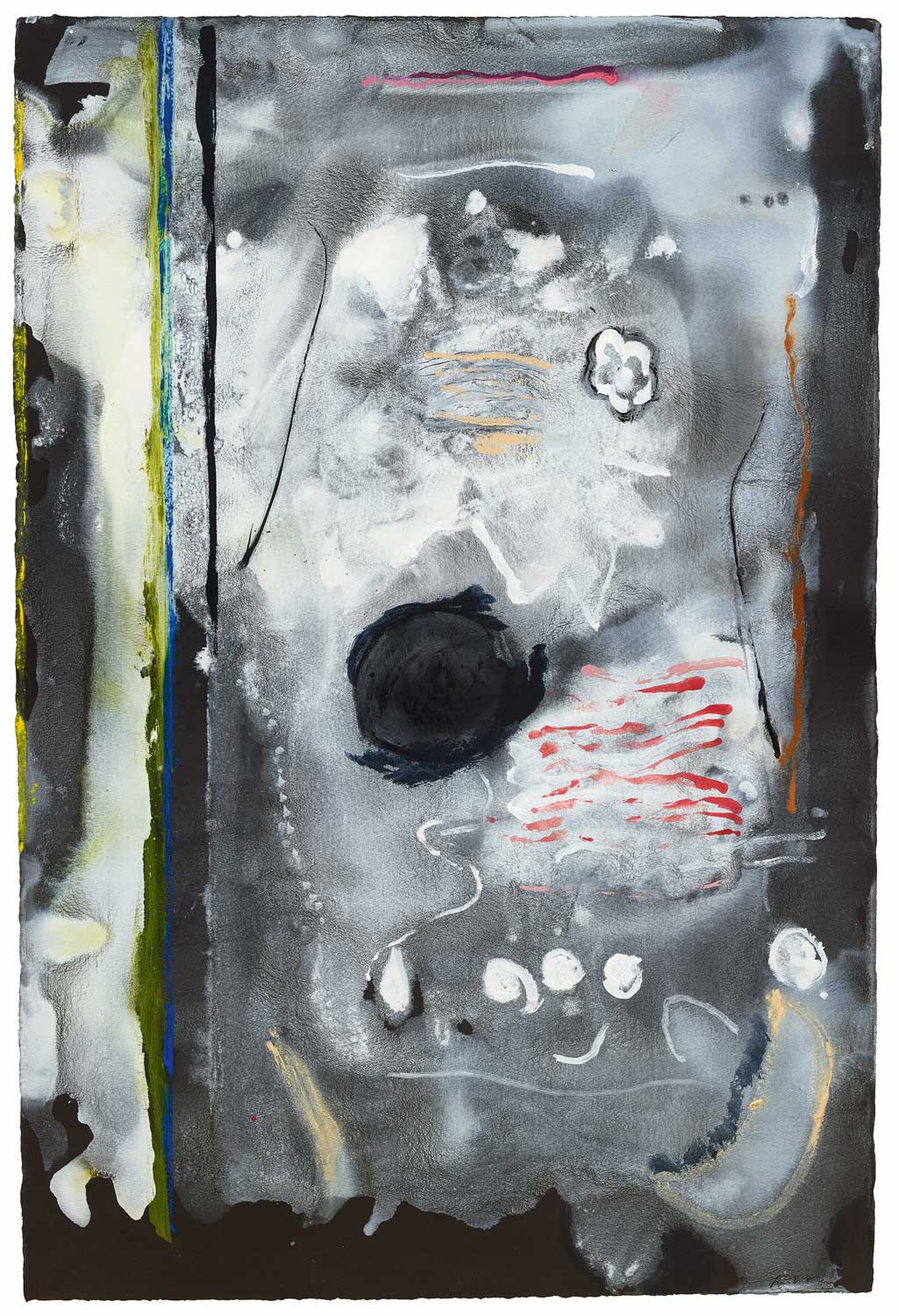 Although many separate publications do now exist on her paintings on paper, I make more mention of them than before. This was especially necessary in the final chapter, which covers the years when working on paper rather than on canvas became central to her practice. More could be said about the difference between what it was like making sometimes very large works on large tables and no longer on the floor, owing to her difficulty in bending. She joked about this, saying, “I no longer stoop to conquer.” But the means of her marking had to be different: reaching across and around the painting surface, never able to kneel—or step or lean—onto it, may account from the tighter compositions with few very long drawn lines than in earlier paintings. We shall look at some later.