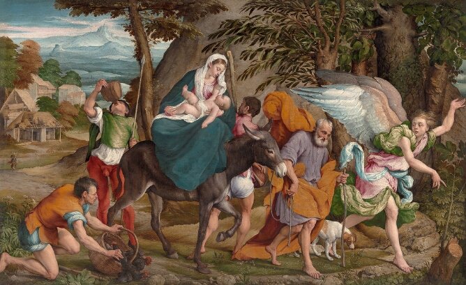 But two years later, she returned to paraphrase in the context of landscape abstraction when she based a fragment of the sky over distant mountains in Bassano’s Flight into Egypt of c. 1544–45 to paint her 1973 Hint from Bassano.